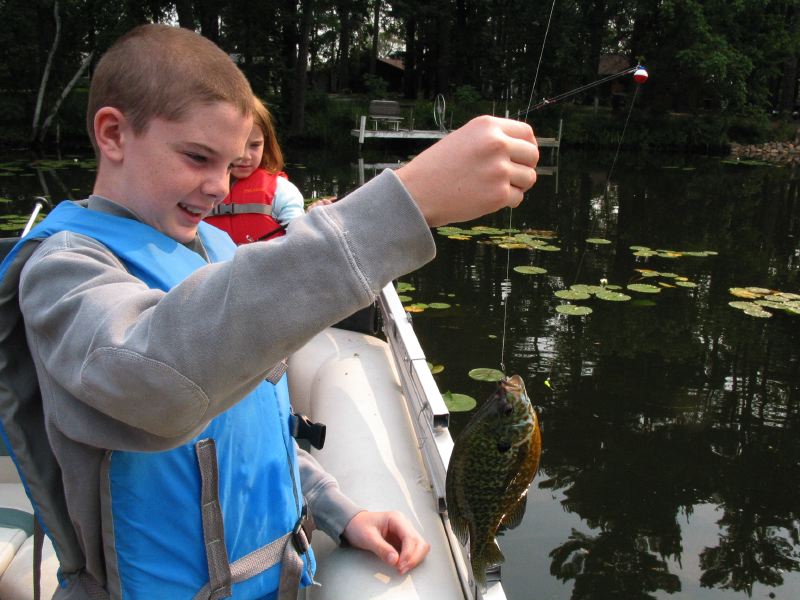 Spent a wonderful morning in a pontoon boat on the other side of the lake, fishing for "sunnies" (and one bass). They were biting like crazy!